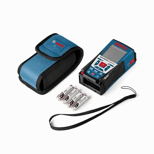 La medición láser GLM 40 de Bosch incluye múltiples capacidades de medición, como área, distancia, longitud, volumen, medición continua, suma y resta. La distancia de medición se extiende hasta 135 pies.
