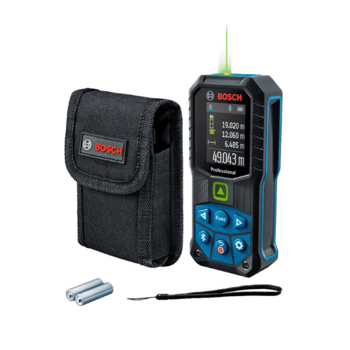 El Medidor Láser verde con Bluetooth Bosch GLM 50-27 CG es el primer medidor con láser verde del mercado y el más robusto de la categoría: con recubrimiento extra de caucho, protección IP 65 y conectividad para transferencia de datos. El láser verde garantiza una visibilidad 4 veces mayo, siendo posible ver el puntero láser incluso en ambientes internos con mucha iluminación. El medidor láser verde Bosch GLM 50-27 CG tiene las siguientes funciones: medición de distancia y altura con un clic, medición continua mientras se mueve el medidor, medición de área y volumen, medición de altura indirecta, nivelación de pequeñas superficies, creación de planos en el celular agregando las medidas en las fotos. El medidor láser verde GLM 50-27 CG de Bosch viene con un estuche de protección, viene con 2 baterías alcalinas AA. Este medidor es compatible con la nueva batería recargable Li-Ion 3.7V de Bosch.